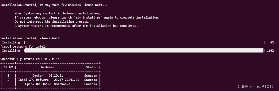 安装 EIV。如果您的系统具有 dGPU,它会将您的内核升级到 6.2.8,并且您的系统将在安装过程中重新启动。重新启动后如果没有跑到100%, 请重复执行此命令 (由于需要重启,请在开始安装之前保存您的工作。)