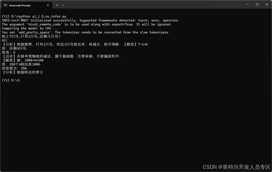 - 编译并载入Yi-5-6B-Chat:OVModelForCausalLM.from_pretrained()