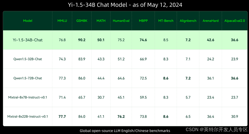 与Yi相比,Yi-1.5在编码、数学、推理和指令遵循能力方面表现得更为出色,同时仍然保持着在语言理解、常识推理和阅读理解方面的卓越能力。这意味着Yi-1.5在多个领域和任务上都实现了性能的提升,不仅限于文本处理,还扩展到了需要逻辑思维和执行特定指示的更复杂应用场景。