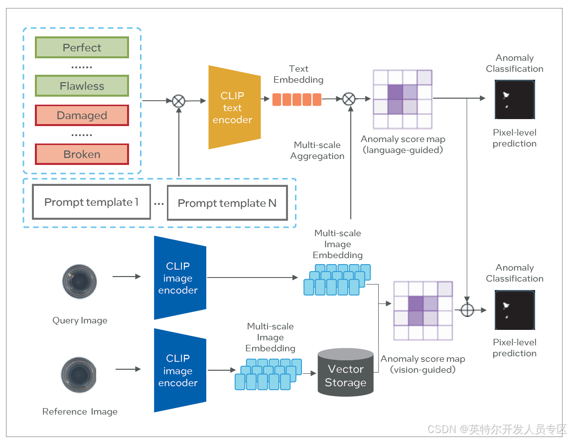 在工业质检环节,用大量数据训练视觉大模型 (CV),使模型具备更强的场景泛化识别能力,可用于产品质检,安全监测复判等流程,助力实现零样本或少样本缺陷检测。